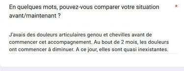 J’ai découvert que ce n’était ni une fatalité, ni “juste l’âge” : en changeant doucement mon hygiène de vie, mes douleurs ont diminué et j’ai retrouvé une vraie liberté de mouvement et j'ai pu reprendre les activités que j'aime.